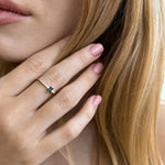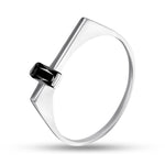 This sterling silver ring with a black cubic zirconia is a striking blend of minimalism and bold elegance.